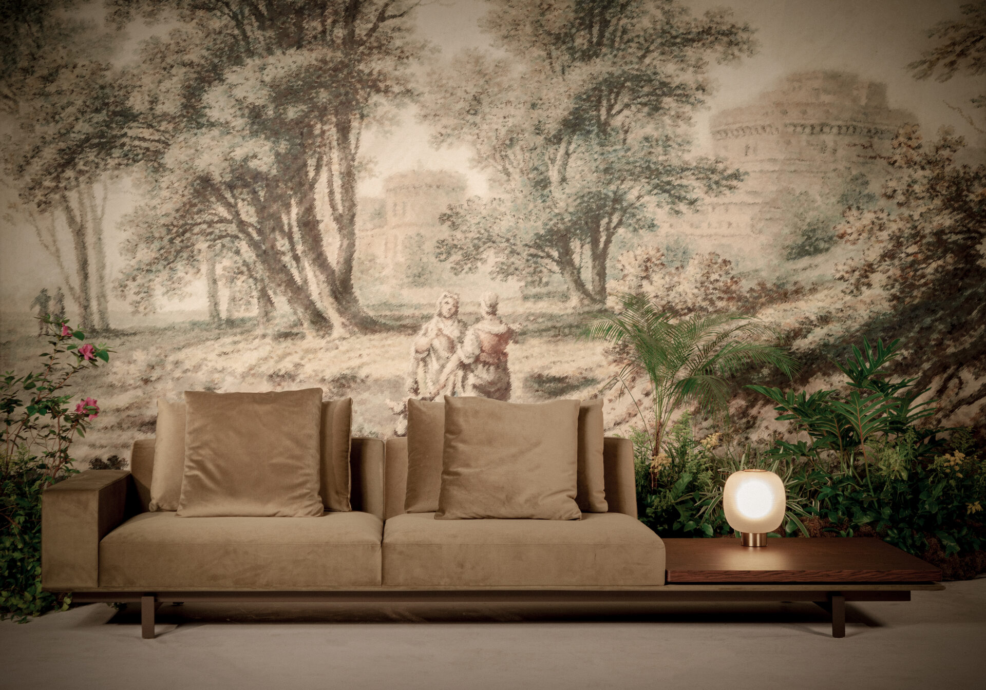 The restrained elegance and well-defined proportions of the Patou sofa express discreet sophistication, a design that prioritizes the essential and conveys stability and refinement through linear forms and a sober visual. With straight lines, wide arms, and an upholstered tatami base, Patou features a solid structure. The metal legs elevate the piece with lightness, and a module with an optional sideboard acts as an extension of the space, enhancing its functionality. The contrast between materials and volumes in this product creates the ideal balance for compositions seeking a contemporary signature.