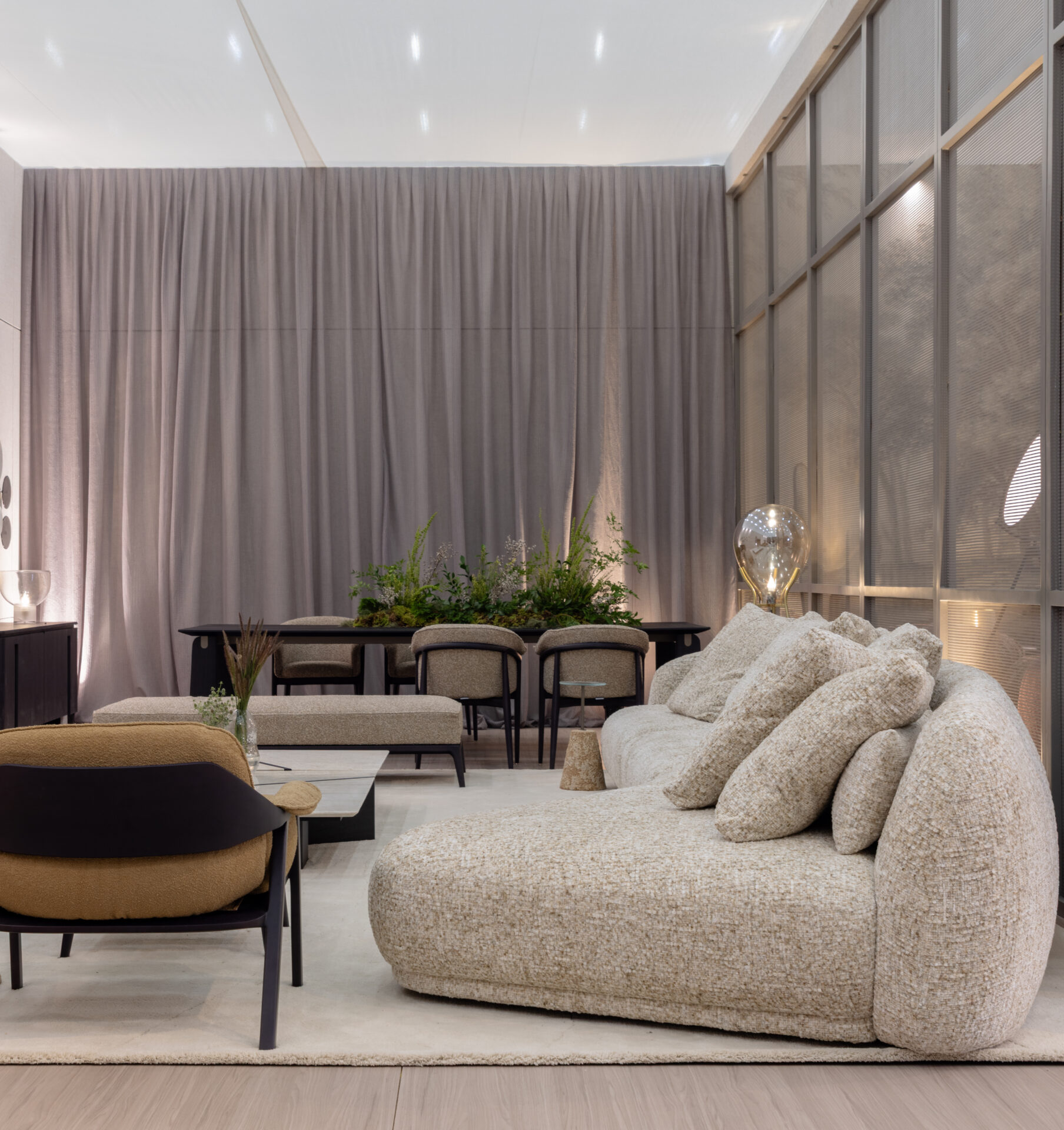 The Villa Lobos sofa invites gathering and conversation through its softly organic and continuous shapes, which naturally integrate into the space. Referencing Brazilian modernism and Heitor Villa-Lobos, the most important and renowned Brazilian maestro, it combines aesthetics and function sensitively and accommodates the body with maximum comfort. The rounded-finish modules consist of arms that connect to the backrest, encircling the robust seat structure, with cushions that complement its look and comfort. It is ideal for compositions where well-being and refinement are equally protagonists.
